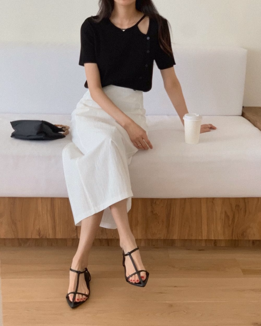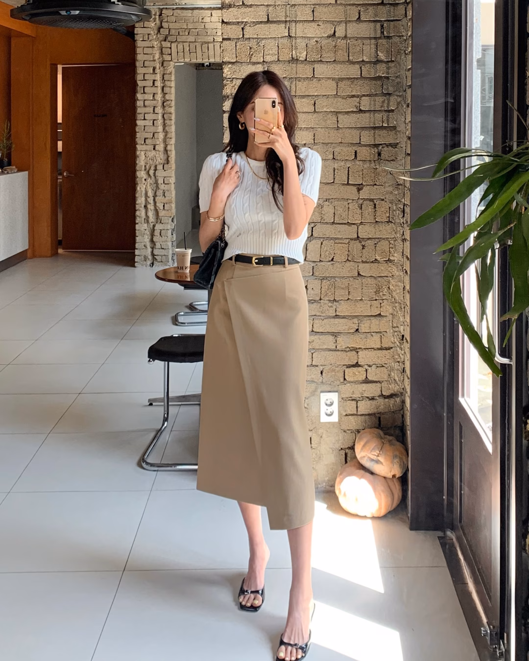 Chân váy xẻ tà chính là lựa chọn lý tưởng khi muốn làm mới phong cách công sở mà vẫn giữ được sự tinh tế. Phần xẻ tà là chi tiết nhỏ nhưng có sức mạnh lớn trong việc tăng sự cuốn hút cho tổng thể trang phục. Không chỉ giúp bộ đồ trông thời thượng hơn, chân váy xẻ tà còn “ăn gian” chiều cao hiệu quả, đặc biệt khi kết hợp cùng giày cao gót kiểu mule hoặc sandal quai mảnh. Đây là kiểu chân váy lý tưởng để chuyển từ mùa hè sang thu vì vẫn giữ được sự thoải mái nhưng có thêm điểm nhấn đầy cuốn hút.