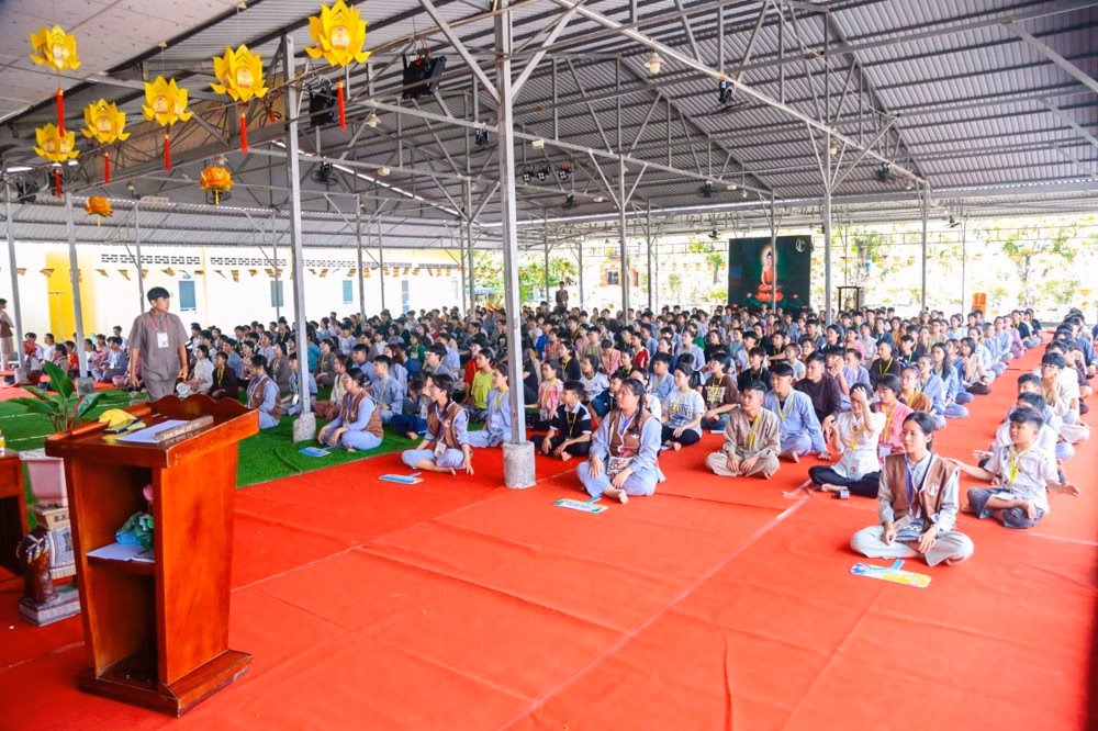 Lễ khai mạc khóa tu mùa hè đã diễn ra trong không khí trang nghiêm, với sự chứng minh của TT. Thích Bình Tâm – Uỷ viên Ban Thường trực HĐTS, Phó Trưởng ban Ban Thường trực Ban Trị sự GHPGVN TP.Cần Thơ, cùng nhiều chư Tôn đức và các bạn thanh thiếu niên tình nguyện. Thông điệp sâu sắc về giá trị của lòng biết ơn và báo ân đã được TT. Thích Bình Tâm truyền tải trong bài phát biểu khai mạc.