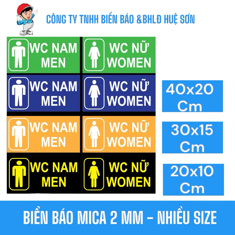 Kích thước: Biển chỉ nhà vệ sinh nên có kích thước phù hợp với không gian nhà vệ sinh.