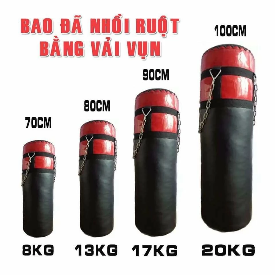 - Kích thước và trọng lượng: Kích thước và trọng lượng của bao cát đấm bốc cũng rất quan trọng. Người mới tập võ thường nên bắt đầu với bao cát nhỏ và nhẹ, sau đó tăng lên khi kỹ năng và sức mạnh của họ tăng lên.