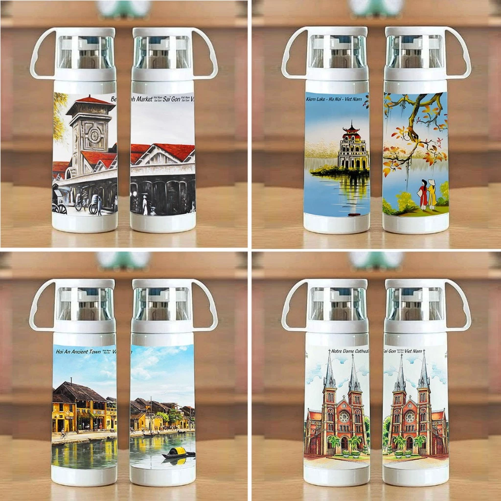 🔥 Bình giữ nhiệt lưu niệm in tranh vẽ danh lam thắng cảnh quê hương Việt Nam, quà tặng du lịch đang giảm giá!