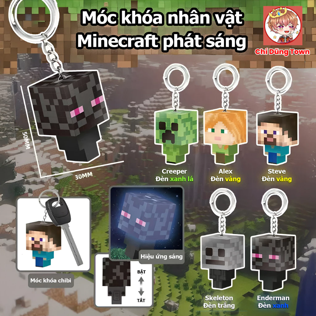 🔥 Móc khóa nhân vật MyCraft phát sáng đèn Pin Enderman, Skeleton, Creeper có nút bật tắt đang giảm giá!