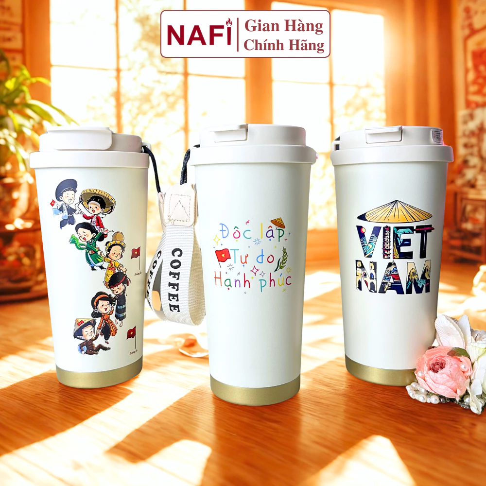 🔥 Ly giữ nhiệt NAFI tráng sứ cao cấp, ly giữ nhiệt inox 316 dung tích 520ml tặng kèm ống hút, ly in hình đất nước đang giảm giá!