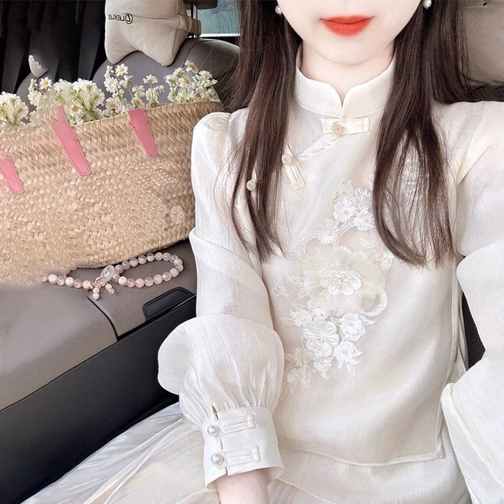 🔥 Set Váy Hán Phục Áo Dài Tay Thêu Hoa Cổ Tàu Cài Cúc Thắt, Chân Váy Dài Phong Cách Trung Quốc Mới Nhẹ Nhàng đang giảm giá!