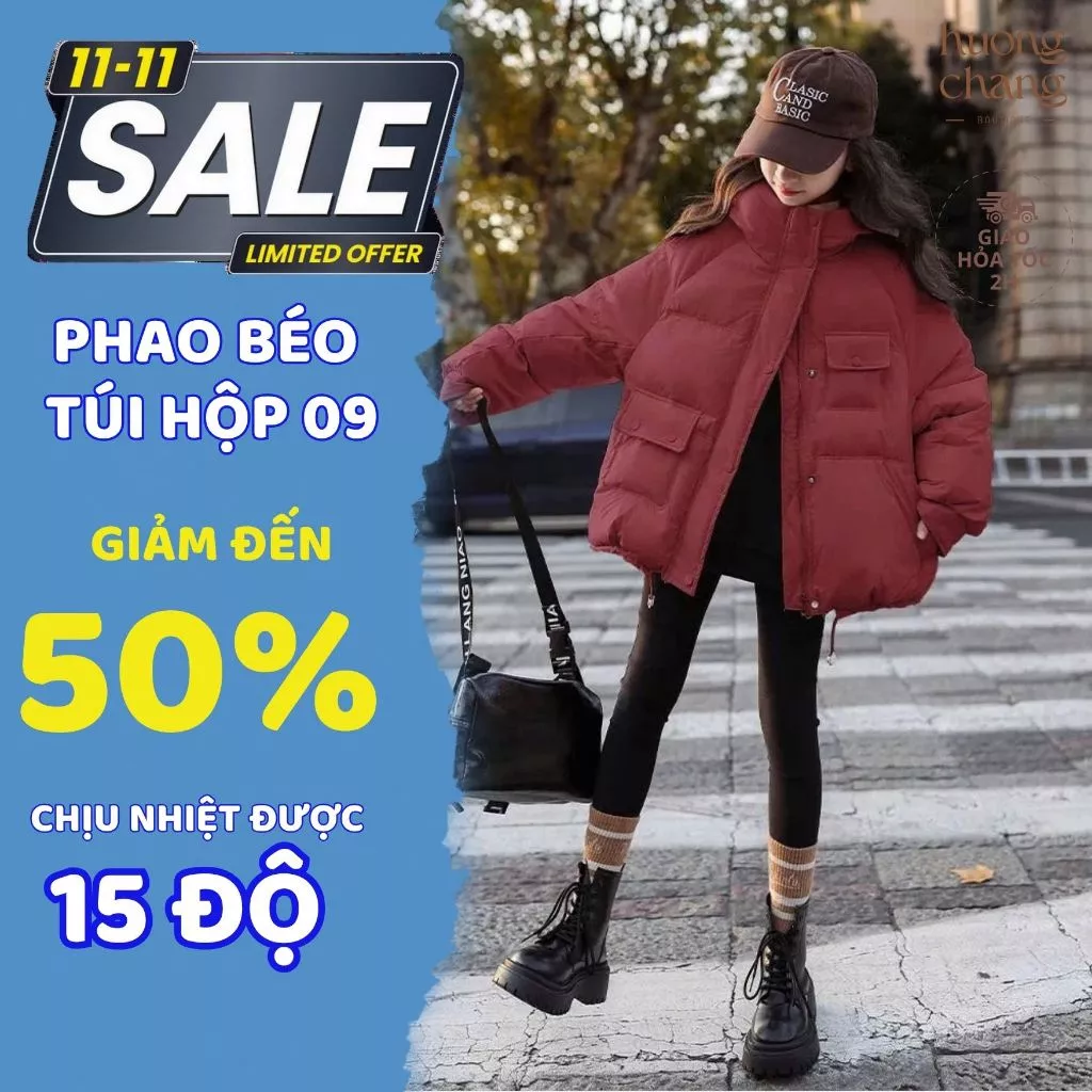 🔥 [VOUCHER 30K 11/11] Áo Khoác Phao Mũ Béo Túi Hộp Trước Ngực Freesize Đến 65kg Ấm Áp Cho Nữ Changhiboutique Mã 09 đang giảm giá!