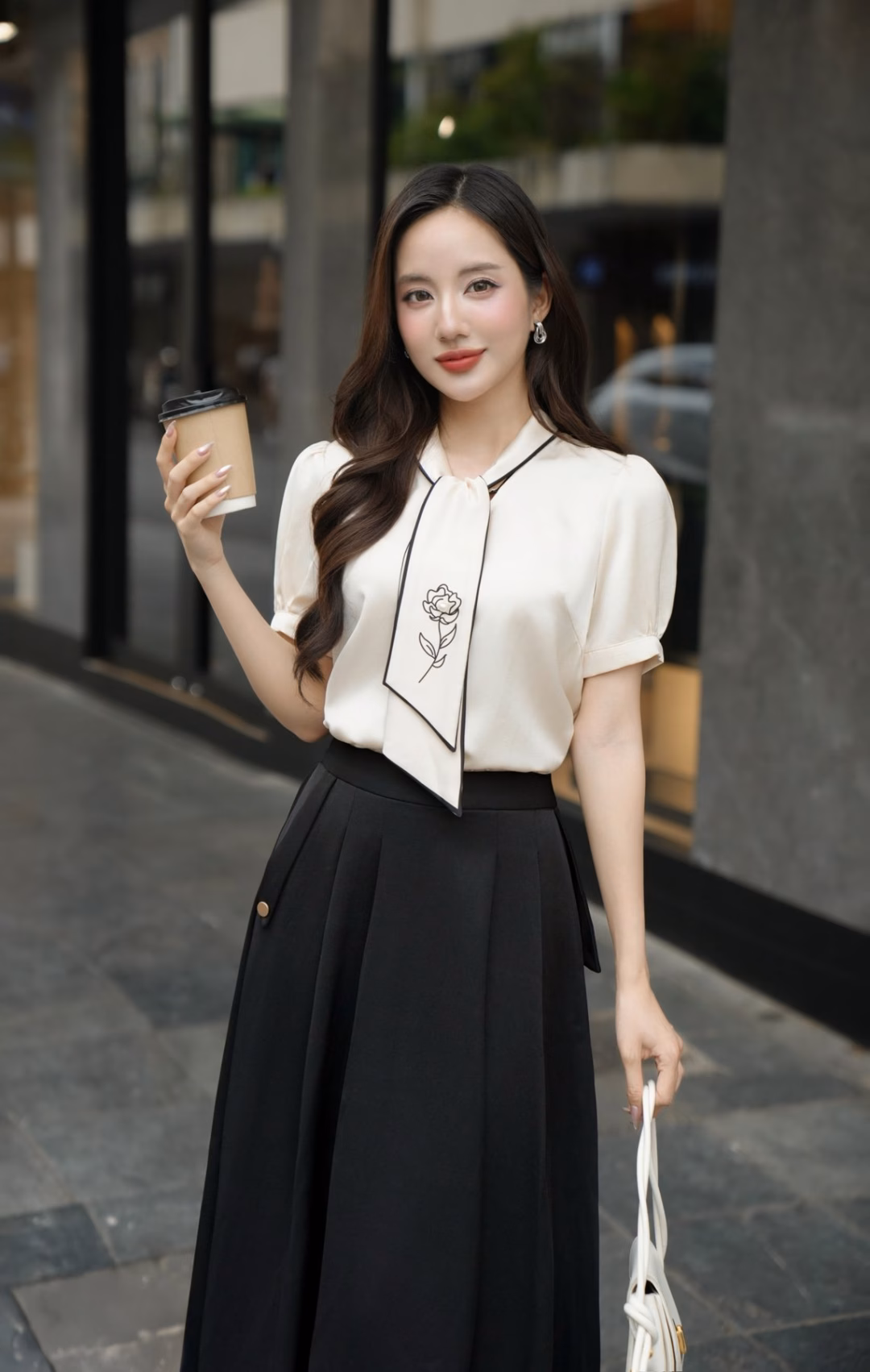Một số gợi ý phối đồ cho váy xòe tay lửng Nhật Bản bao gồm: