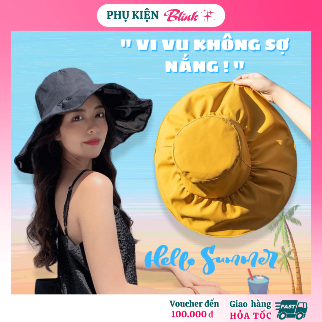 🔥 Mũ nón rộng vành chống nắng nữ vải kaki size 56-58 cm gấp gọn không thấm nước du lịch, đi chơi đang giảm giá!
