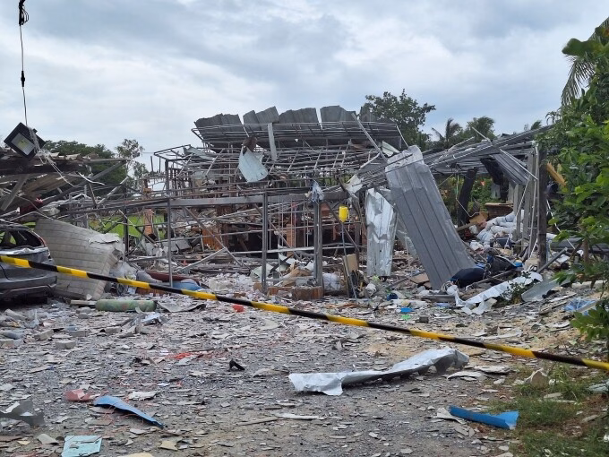 Các hình ảnh tại hiện trường cho thấy nhà máy bị phá hủy hoàn toàn, mặt đất ngổn ngang mảnh vỡ và những chiếc xe đậu gần đó cũng bị hư hại nghiêm trọng. Giới chức Thái Lan đã xác định đây là một nhà máy pháo hoa hoạt động trái phép, được cải tạo từ hai ngôi nhà dân, chuyên sản xuất những quả pháo cầu cỡ nhỏ thường được nông dân sử dụng để xua đuổi chim chóc.