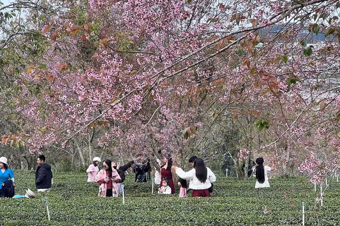Lễ hội Hoa Mai Anh Đào 2026 đã biến đồi chè Cầu Đất – một di tích nông nghiệp trăm năm tuổi – thành không gian xanh rực rỡ của mùa xuân Đà Lạt.