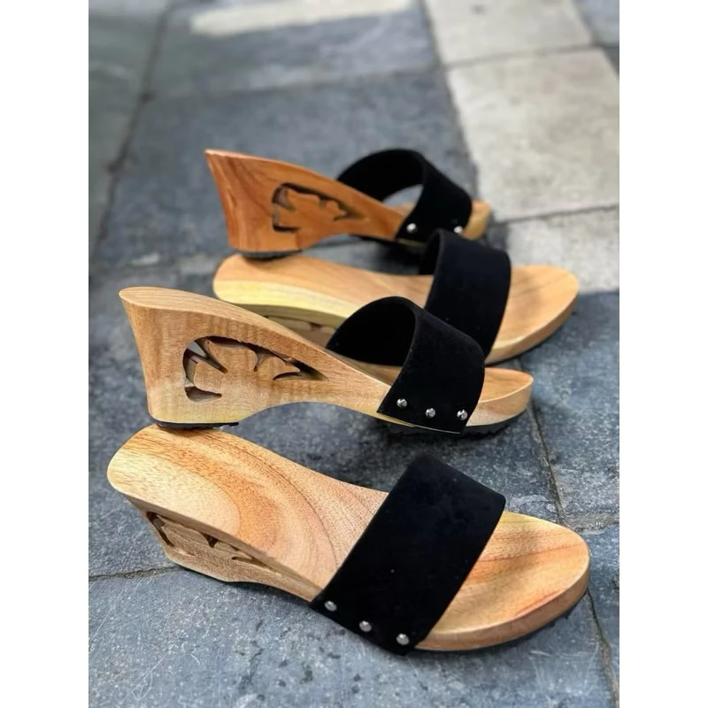 Trước hết, loại giày này được làm từ gỗ tự nhiên, đảm bảo tính bền vững và an toàn cho người đeo. Gỗ tự nhiên cũng mang lại một vẻ đẹp tự nhiên và ấm áp cho đôi giày.