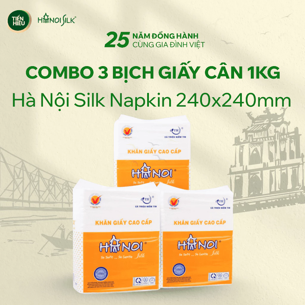 🔥 COMBO 3 Bịch Khăn Giấy Cân Cao Cấp Hanoi Silk Napkin 3 Lớp Mềm Mịn Tiện Lợi Khổ 240 x 240mm 500 Tờ 1kg đang giảm giá!