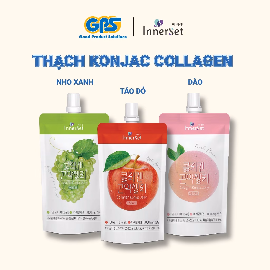 🔥 Thạch Konjac Collagen Innerset 10kcal (Đào/ Táo/ Nho Xanh) đang giảm giá!