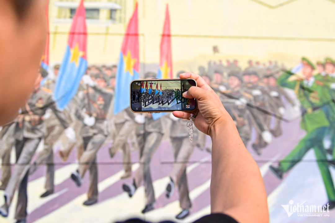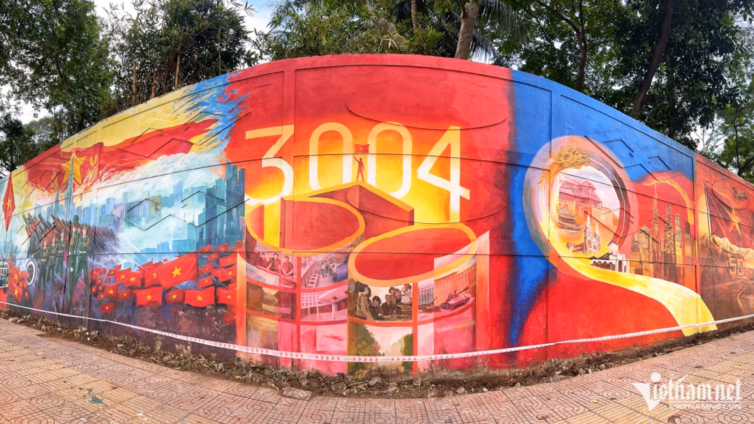 Trên đường Nguyễn Hữu Cảnh, phường Sài Gòn, TPHCM, một công trình nghệ thuật độc đáo đang thu hút sự chú ý của nhiều người qua lại. Đó là loạt tranh bích họa tái hiện các khối diễu binh mừng 50 năm thống nhất đất nước, trải dài trên bức tường 300m.
